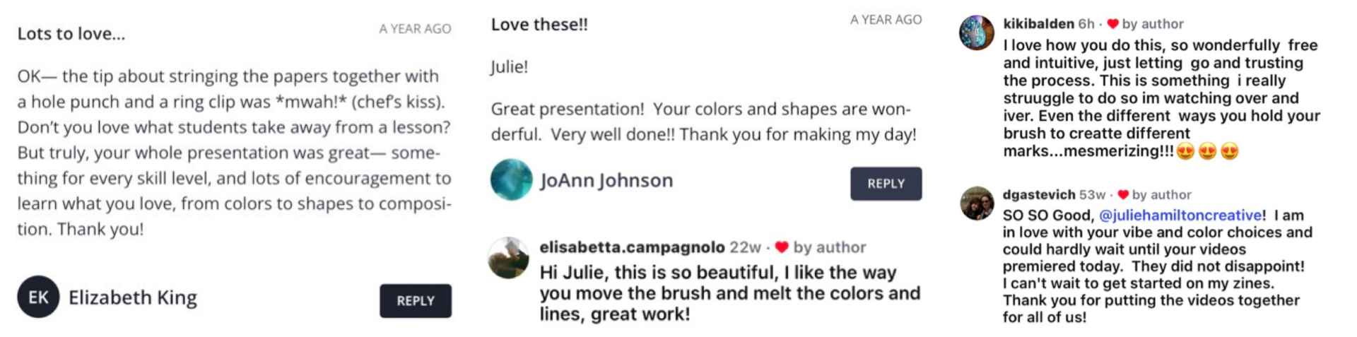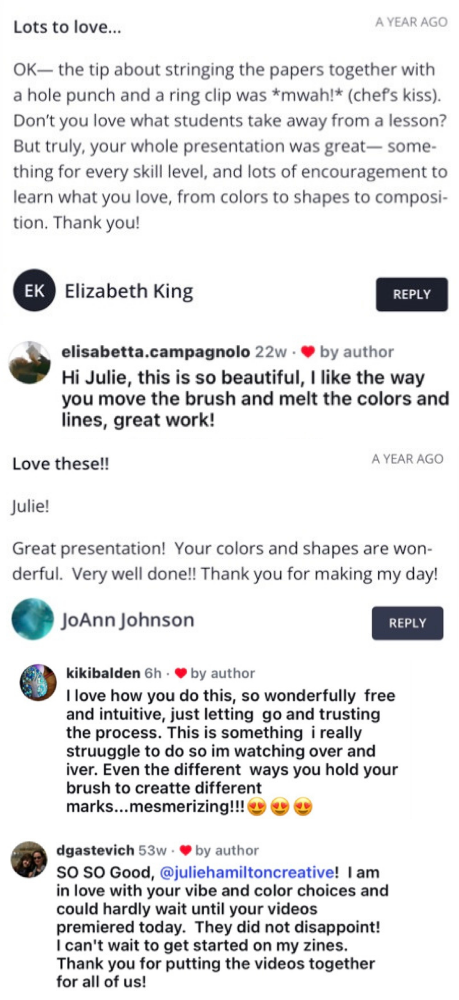 Celebrate what you’ve created and reflect on how your artistic voice has grown. Julie shares final thoughts and encouragement to help you continue your creative journey.
