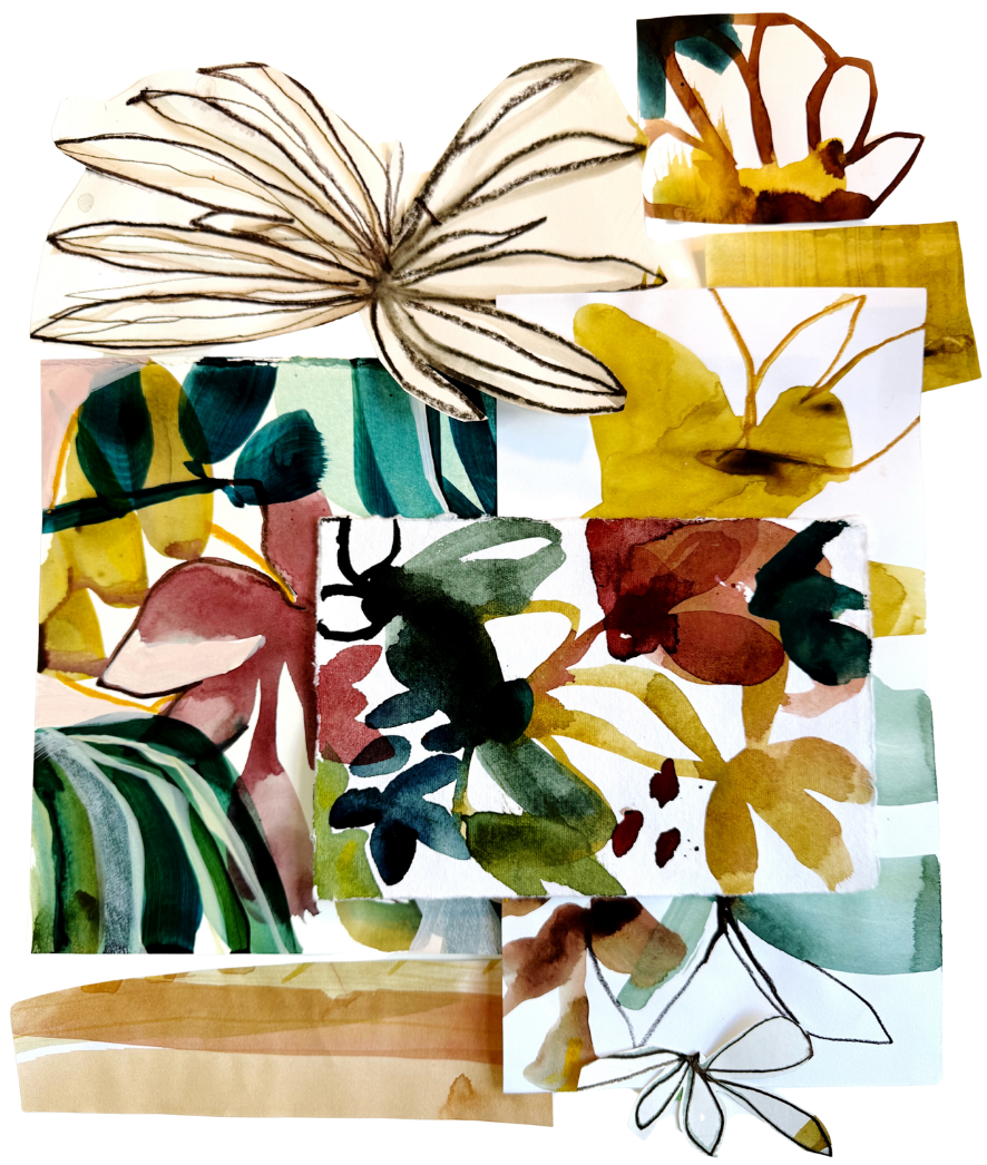 My work blends drawing, paint, collage and expressive mark-making, often inspired by the shapes, colors and rhythms of the natural world.